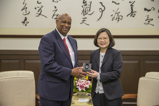 President Tsai bids farewell to Hubert Emmanuel, outgoing Saint Lucia Ambassador to the ROC