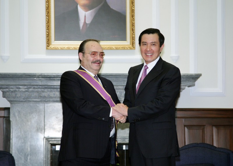 After the protocol officer read a statement declaring the honor, President Ma placed the sash and the medal of honor on Mr. Vázquez. He then shook hands with Mr. Vázquez and offered his congratulations. Mr. Vázquez made brief remarks after accepting the honor. President Ma and Mr. Vázquez then raised their glasses and toasted each other. Those in attendance also raised their glasses in a gesture of congratulations.