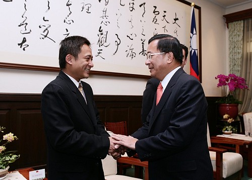 President Chen Shui-bian met with Junior Chamber International (JCI) 2008 World President Graham Hanlon at the Presidential Office on the morning of January 2. Also in attendance was Trevor Tu, the president-elect of the Taiwan chapter of the JCI. Tu will be the 56th president of the local chapter upon inauguration. President Chen extended a warm welcome to both of the guests.
