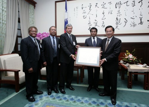 President Chen also lauded Senate President Whipps for his outstanding administrative accomplishments and noted his popularity among the people of Palau. He mentioned that Senate President Whipps has served four terms in the House of Delegates and two terms as a senator. He has been the president of the House of Delegates in the past and now is the president of the Senate. In addition to his abundant experience in the political arena, he is also a popular political figure among the people. President Chen said that he offers his best wishes to Senate President Whipps, who plans to run for president of his nation. The president also said he hopes the wishes of the other parliamentarians in running for re-election or being elected as vice president will be fulfilled.