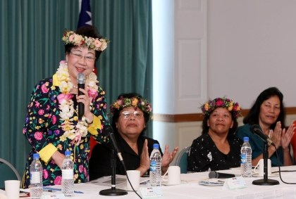 Vice President Annette Lu today spent her second day in the Marshall Islands, one of Taiwan's diplomatic allies in the Pacific region. At 10:00 a.m. (6:30 a.m. January 30 Taipei time), the vice president attended a reception hosted by women leaders from the Marshall Islands. At the beginning of the reception, the local women sang a local folk song to welcome the vice president. The vice president then made the rounds, greeting each one of the local participants. The first lady of the Marshall Islands, Arleen Tomeing, then made remarks and extended a formal welcome to Vice President Lu.