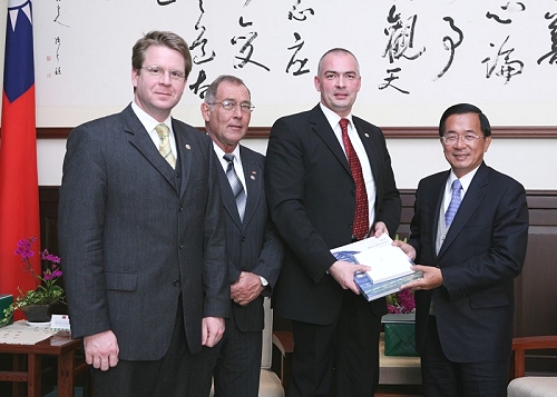 President Chen noted that Germany is Taiwan's largest trading partner in Europe and is its sixth largest global trading partner. Meanwhile, Taiwan is Germany's fourth largest Asian trading partner. In 2006, bilateral trade exceeded US$13.75 billion, marking a growth of 17% from the previous year. In addition, trade between the two countries in 2007 grew another 10%. He said he hopes the two countries will further strengthen their commercial and economic cooperation based on the existing foundation.