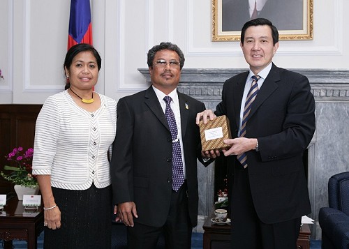 President and Mrs. Remengesau were accompanied in the morning to the Presidential Office by Minister of Foreign Affairs Francisco H. L. Ou to meet with President Ma.