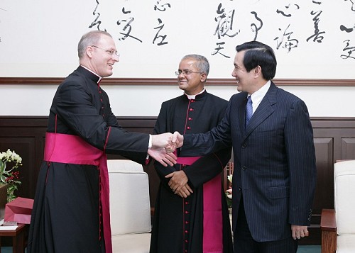President Ma said that Msgr. Madtha has served as the Holy See's charge d'affairs here for over five years and maintains extremely close ties with many circles throughout Taiwan. The president said that the Taiwan people are extremely impressed with the work carried out by Msgr. Madtha and that everyone should be quite sorry to see him leave Taiwan. President Ma said the Republic of China and the Holy See have long maintained friendly relations. The president noted that former president Chen Shui-bian visited the Vatican in 2005 to attend the funeral of the late Pope John Paul II. President Ma said he hopes that relations between Taiwan and the Holy See will continue to strengthen based on the existing foundation following Msgr. Fitzpatrick Russell's appointment to his new post.