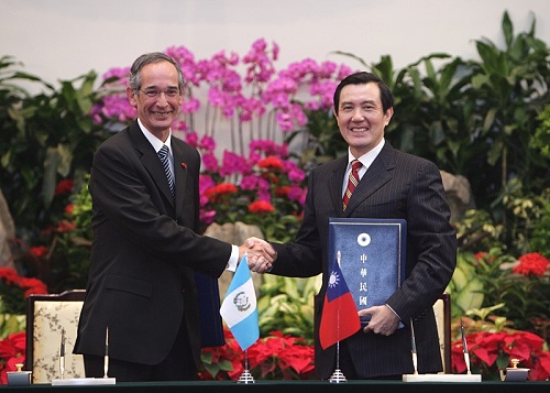 President Ma Ying-jeou and Republic of Guatemala President Álvaro Colom Caballeros, in Taiwan to attend the ROC's 2008 National Day celebration, on the morning of October 11 at the Presidential Building signed a joint communiqué. The communiqué states that the presidents of the two countries have pledged to further strengthen cooperation and boost bilateral ties amid the over 70 years of political and economic cooperation between the two nations. This increased cooperation will help to further enhance the wellbeing of the people of the two countries.