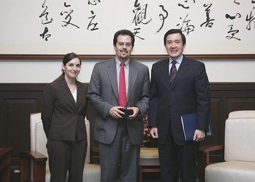 President Ma and Mr. Walker then exchanged opinions on democratic trends throughout the world as well as judicial reforms in Taiwan. President Ma reiterated that the government opposes illegal surveillance and supports the legislation of human rights. It also will not intervene in judicial cases, while supporting amendments to the Assembly and Parade Act's notification system. Citing US President George W. Bush's statement calling Taiwan a beacon for democracy in Asia and the world in his congratulatory message to President Ma upon winning the presidential election, the president explained how Taiwan's democracy is sure to have an impact on the public in Mainland China and strengthen yearning among people there for a democratic system.