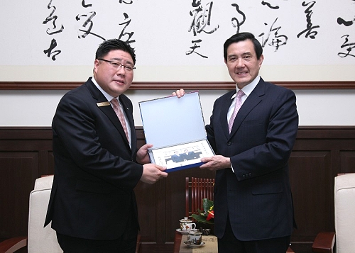Mr. Shin was accompanied to the Presidential Office in the morning by Junior Chamber International Executive Vice President Rafael Dizon III, JCI Vice President James Tsui, and Taiwan Junior Chamber President Dennis Shen to meet with President Ma. Also in attendance was National Security Council Deputy Secretary-General Ho Szu-yin.
