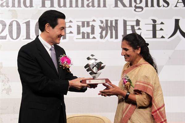 President Ma Ying-jeou attended the ceremony on the morning of December 10 marking the presentation of the Taiwan Foundation for Democracy's 2010 Asia Democracy and Human Rights Award. When he personally presented this year's award to Triveni Balkrishna Acharya, president of India's Rescue Foundation, President Ma reiterated the government's commitment to protection of human rights.