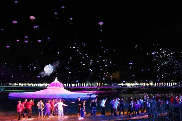After concluding his remarks, the president, the dignitaries on hand, and the public were treated to a series of shows coordinated and planned by Lin Hwai-min that featured spectacular performances on land, in the water, and in the air. The crowd then watched a fireworks display that was designed by internationally renowned fireworks artist Cai Guo-qiang.