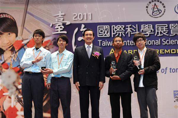 President Ma Ying-jeou on the morning of February 18 attended the 2011 Taiwan International Science Fair Award Ceremony, at which he delivered an English speech and later presented awards to four winners of Youth Science Awards.