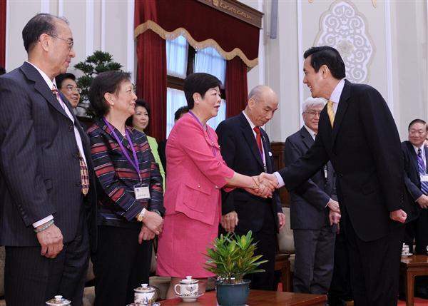 The guests were accompanied to the Presidential Office by Overseas Compatriot Affairs Commission Minister Wu Ying-yih (吳英毅) to meet President Ma.