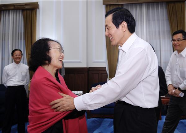 President Ma Ying-jeou met on the afternoon of May 24 with Ms. Hualing Nieh Engle (聶華苓), co-founder of the International Writing Program (IWP) at the University of Iowa. The president extended a cordial welcome to the novelist on her visit to Taiwan.
