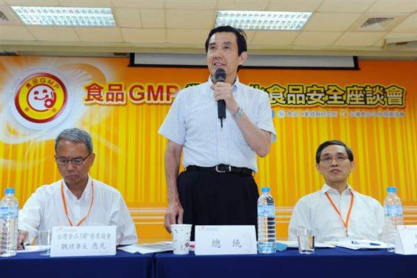 President Ma Ying-jeou on the afternoon of July 3 attended a symposium held in Hsinchu to discuss how to improve food safety. Manufacturers that have adopted good manufacturing practices (GMP) attended the forum. Accompanied by Minister of Economic Affairs Shih Yen-shiang (施顏祥), President Ma listened to briefings presented by the Food Industry Research and Development Institute and the Taiwan Food GMP Development Association, and then heard opinions and suggestions of food manufacturers on food safety topics.