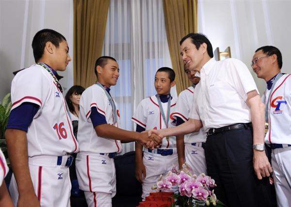 President Ma Ying-jeou met on the morning of July 18 with the team of youngsters from Taiwan that won the 2011 International Baseball Federation (IBAF) 12U Baseball World Championship, and offered praise and admiration for the team's wonderful performance during the tournament.
