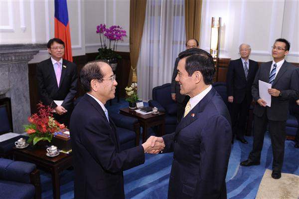 The delegation, which included Chairman Ohashi, Interchange Association Taipei Office Chief Representative Tadashi Imai, and Interchange Association Director General Keiji Kamei, was accompanied to the Presidential Office by Vice Minister of Foreign Affairs Ssu-Tsun Shen (沈斯淳) and Taiwan's Association of East Asian Relations Chairman Peng Run-tsu (彭榮次) to meet President Ma and Vice President Siew.
