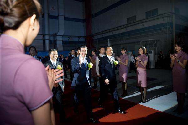 President Ma stated that he especially wanted to attend the ceremony to highlight the government's emphasis on development of the aviation industry. The aviation sector is an important link between Taiwan and the rest of the world, he said. Consequently, when he campaigned for the presidency, he ran on a platform of "building up Taiwan while linking up with the Asia-Pacific region and creating a global presence." Toward this end, the first key is to create a "golden aviation loop in Northeast Asia," the president noted, explaining that his hope is to connect Taipei's Songshan Airport with Tokyo's Haneda Airport, Shanghai's Hongqiao Airport, and Seoul's Gimpo International Airport. To date, he said, three-fourths of this vision has been realized, and efforts are currently being made to complete this "aviation loop."