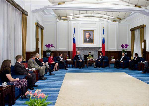The delegation, including Florida Secretary of State Kurt S. Browning, North Carolina Secretary of State Elaine F. Marshall, Washington Secretary of State Sam Reed, Vermont Secretary of State Jim Condos, Arkansas Secretary of State Mark Martin and Mrs. Martin, and Puerto Rico Secretary of State Kenneth D. McClintock Hernández, was accompanied by Deputy Foreign Minister Lyushun Shen (沈呂巡) to the Presidential Office to meet President Ma. Also attending the meeting was National Security Council Deputy Secretary-General Chih-kung Liu (劉志攻).