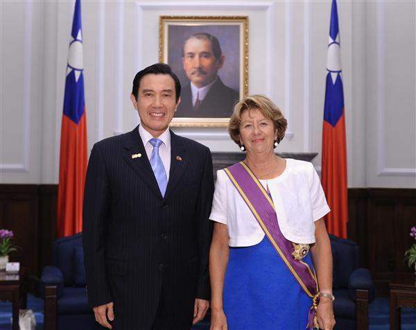 President Ma Ying-jeou on the afternoon of October 11 presented the Order of Brilliant Star with Grand Cordon to Monique Papon, Vice President of the French Senate and Chairwoman of the French Senate's Taiwan Friendship Group, in recognition of her outstanding contributions to promoting ties between the ROC and France in a variety of fields.