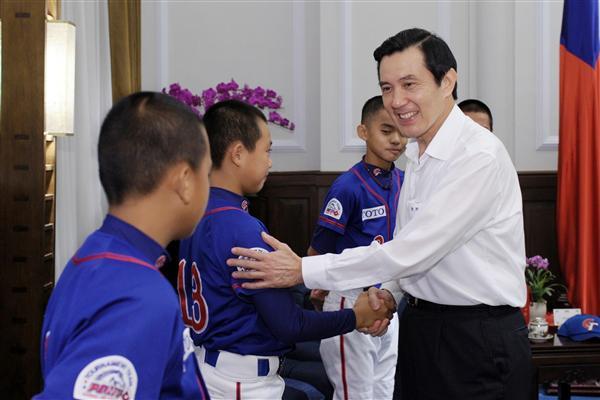 President Ma Ying-jeou on the morning of October 14 at the Presidential Office met with the Kuei-Shan little league baseball team from Chinese Taipei that won the Pony League's 2011 Bronco World Series in the United States. The president congratulated the youngsters on their achievement.