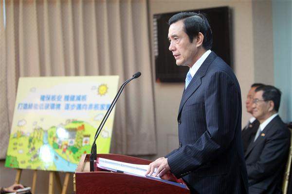President Ma Ying-jeou convened a press conference on the morning of November 3 at the Presidential Office to unveil his energy policy. The president announced that the lifespans of the First, Second, and Third Nuclear Power Plants will not be extended, and that all safety requirements will be satisfied at the Fourth Nuclear Power Plant, which is currently still under construction, before it is commissioned. The president added that if the two generating units of the Fourth Nuclear Power Plant both come online and operate stably prior to 2016, the First Nuclear Power Plant will be decommissioned ahead of schedule.