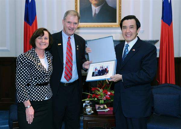 Congressman and Mrs. Owens were accompanied to the Presidential Office by Deputy Minister of National Defense Andrew N.D. Yang (楊念祖), Deputy Minister of Foreign Affairs Tung Kuo-yu (董國猷), and Acting Director of the American Institute in Taiwan Eric H. Madison (馬怡瑞) to meet President Ma. Also attending the meeting was National Security Council Deputy Secretary-General Chih-kung Liu (劉志攻).
