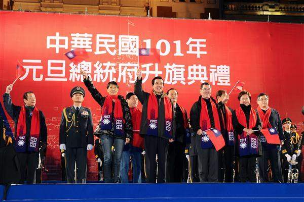 President Ma Ying-jeou and Mrs. Ma and Vice President Vincent C. Siew and Mrs. Siew attended the annual flag-raising ceremony in the plaza in front of the Presidential Office Building at 6:30 a.m. on January 1 to usher in the first day of 2012 and the 101st year of the Republic of China. The president, vice president and others gathered with the crowd to welcome in the new year.