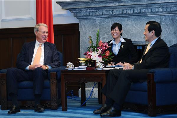 President Ma emphasized to Chairman Burghardt that the Taiwan-United States relationship is an important pillar to the aforementioned foundation. The ROC government places great importance on the bilateral relationship, he said, and in the future will maintain broad-based cooperation with the United States. In addition, in order to provide more insight to Chairman Burghardt on current political developments here, the president also explained that after being re-elected he pledged to exchange opinions with leaders from the opposition every six months and to hold forums with civic groups every month. He also intends to make frequent visits throughout Taiwan to better understand the wealth gap, the state of joblessness, environmental protection issues, and other topics of importance to society. In particular, he said, the latest Cabinet reshuffle reflects the importance the government places on national land planning, finance, the economy, culture, and education. In the future, all of these issues will be looked at comprehensively to formulate appropriate policies and plans, he said.