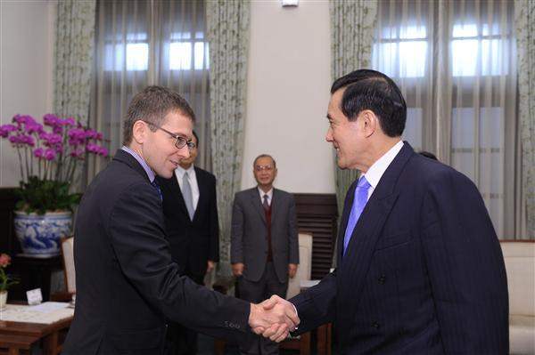 Eurasia Group President Ian Bremmer, Eurasia Group Asia Analyst Nicholas Consonery, and independent consultant James Peng (彭智明) were accompanied to the Presidential Office by Council for Economic Planning and Development Deputy Minister Hu Chung-ying (胡仲英), and Director-General of the Ministry of Foreign Affairs' Department of North American Affairs Bruce J. D. Linghu (令狐榮達) to meet President Ma. Also attending the meeting was National Security Council Deputy Secretary-General Chih-kung Liu (劉志攻).