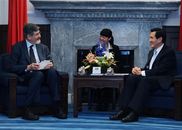 Professor Lessard and Epoch Foundation Chairman Barry Lam (林百里) and President Paul Hsu were accompanied to the Presidential Office by Environmental Protection Administration Minister Stephen Shu-hung Shen (沈世宏) and Vice Minister of Economic Affairs Hwang Jung-Chiou (黃重球) to meet President Ma. Also attending the meeting was National Security Council Secretary-General Hu Wei-jen (胡為真).