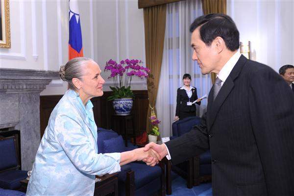 Ms. Shuttleworth was accompanied to the Presidential Office by Deputy Minister of the Interior Tseng Chung-ming (曾中明) and Deputy Minister of Education Wu Tsai-shung (吳財順) to meet President Ma. Also attending the meeting was National Security Council Advisor Wang Yu-chi (王郁琦).