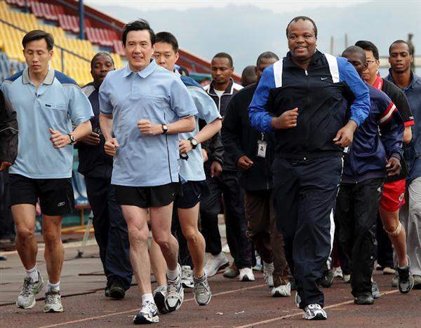 President Ma Ying-jeou on April 16 spent a second day in the Kingdom of Swaziland, the final leg of his journey to African allies codenamed "Project Benevolence and Friendship." At 7:00 a.m. (1:00 p.m. Taipei time), the president and Swaziland's King Mswati III went jogging together at the Somhlolo National Stadium and took advantage of the opportunity to interact in an informal setting.