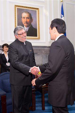 President Ma Ying-jeou on the afternoon of May 20 at the Presidential Office met with a delegation from Paraguay led by Paraguayan President Fernando Lugo Mendez. The delegation is in Taiwan to take part in the inauguration ceremonies for the 13th-term president and vice president of the ROC. Also attending the meeting were Vice President Wu Den-yih, National Security Council Secretary-General Hu Wei-jen (胡為真), and Minister of Foreign Affairs Timothy Chin-tien Yang (楊進添).