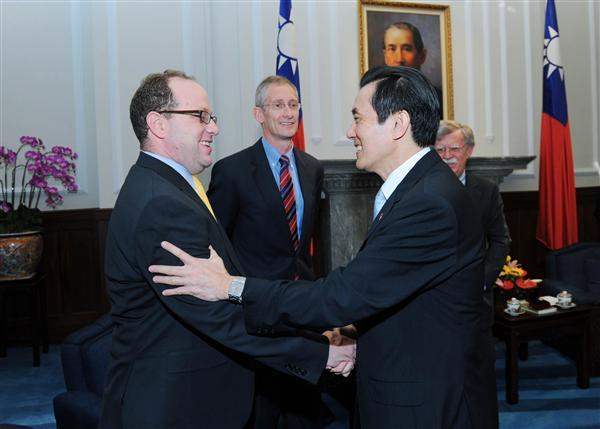 The delegation was led by Senior Fellow John Bolton to the Presidential Office to meet with President Ma. Also attending the meeting were National Security Council Secretary-General Hu Wei-jen (胡為真) and Deputy Minister of Foreign Affairs Tung Kuoyu (董國猷).