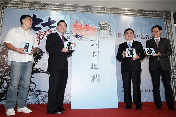 President Ma Ying-jeou on the morning of July 7 attended a press conference and ceremony to mark the opening of the Exhibition for the 75th Anniversary of the Marco Polo Bridge Incident. The exhibition is being held by the Taipei City Archives. The president commented that we should all cherish the memory of the martyrs who sacrificed their lives for the country in the War of Resistance against Japan (1937-1945). He also urged people not to forget the truths of history, and to make sure the next generation knows what happened in the past.