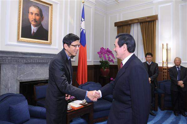National University of Singapore President Tan Chorh Chuan (陳祝全) and City University of Hong Kong President Way Kuo (郭位) were among those escorted to the Presidential Office by Minister of Education Chiang Wei-ling (蔣偉寧) and University System of Taiwan Chancellor Ovid J. L. Tseng (曾志朗) to meet President Ma. Also attending the meeting was National Security Council Advisor Francis Yi-Hua Kan (甘逸驊).