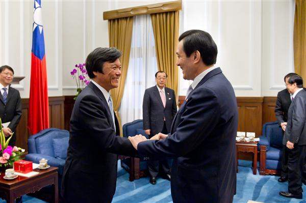 The 17-member delegation led by Governor Ogawa was accompanied to the Presidential Office in the morning by Association of East Asian Relations Chairman Liao Liou-yi (廖了以) to meet President Ma. Also attending the meeting were Secretary-General to the President Timothy Chin-tien Yang (楊進添), National Security Council Advisor Lee Chia-chin (李嘉進), and Deputy Minister of Foreign Affairs Tung Kuoyu (董國猷).