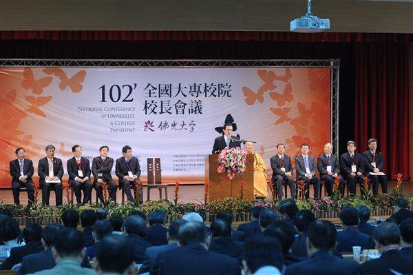 President Ma Ying-jeou attended the 2013 National Conference of University and College Presidents at Fo Guang University on the morning of January 14. In addition to recognizing the contributions made to education by the school presidents and other guests attending the conference, the president also expressed his hopes that participants at the conference will be able to pool their expertise to create a comprehensive vision for higher education. This, he said, will help Taiwan's educational institutions to develop to new levels.