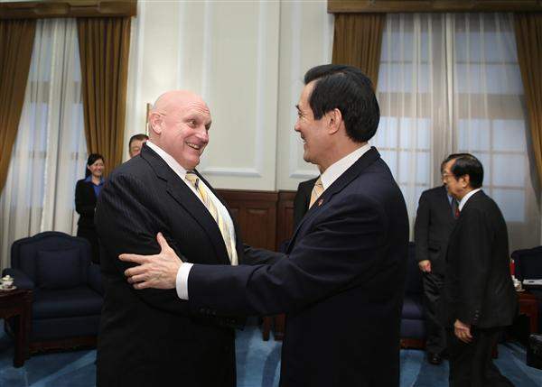 The delegation also included Professor Joe DeTrani of the University of Missouri, and President and CEO Randall Schriver of the Project 2049 Institute. The group was escorted to the Presidential Office by Deputy Director Brent Christensen of the Taipei Office of the American Institute in Taiwan to meet President Ma. Also attending the meeting were Secretary-General to the President Timothy Chin-Tien Yang (楊進添) and National Security Council Secretary-General Jason C. Yuan (袁健生).