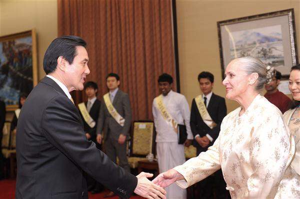 The members of the visiting group were from the United States, Germany, India, Nepal, Sri Lanka, Japan, Mexico, Australia, and the ROC, and were led to the Presidential Office by Dr. Mary Shuttleworth (Founder and President of Youth for Human Rights International) and President Hsu Ya-chen (許雅琛) of Chunghwa Association for Human Rights to meet President Ma. Also attending the meeting were National Security Council Advisor Francis Yi-Hua Kan (甘逸驊) and Vice Minister of Foreign Affairs Vanessa Yea-Ping Shih (史亞平).