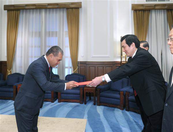 Minute Alapati Taupo, the new ambassador from Tuvalu to the ROC, presented his credentials to President Ma Ying-jeou at the Presidential Office Building in a ceremony held at 10 a.m. on the morning of March 14. President Ma cordially welcomed Ambassador Taupo to his new position, and called for a continued stable relationship between the two nations as well as further expansion of cooperation.