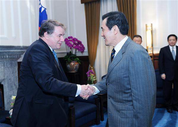 Mr. Turpin was accompanied by Chinese National Association of Industry and Commerce Chairman Kenneth C. M. Lo (駱錦明) and Honorary Chairman Theodore M. H. Huang (黃茂雄) to the Presidential Office to meet with President Ma. Also attending the meeting were National Security Council Secretary-General Jason C. Yuan (袁健生) and Council for Economic Planning and Development Minister Kuan Chung-ming (管中閔).