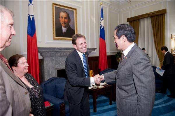 The delegation also included MPs Laurie Hawn, Maria Mourani, Tilly O'Neill Gordon, Anne-Marie Day, and John Carmichael. The group was escorted to the Presidential Office in the afternoon by Canadian Trade Office in Taipei Executive Director Kathleen Mackay to meet President Ma. Also attending the meeting were Secretary-General to the President Timothy Chin-Tien Yang (楊進添), National Security Council Advisor Francis Yi-Hua Kan (甘逸驊), and Deputy Minister of Foreign Affairs Ting Joseph Shih (石定).