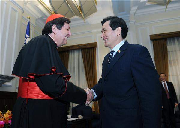 President Ma Ying-jeou met with a delegation led by Prefect of the Vatican's Congregation for Institutes of Consecrated Life and Societies of Apostolic Life Cardinal Joao Braz de Aviz late in the morning on April 12. The president expressed hope that this visit would further enhance cooperative ties between the ROC and the Vatican.