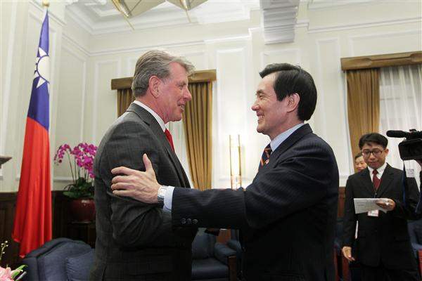 President Ma explained to the visitors that Taiwan and the United States have strong ties, and the relationship is now better than at any time since 1979. In addition to close cooperation in the area of security, he said, the United States in October of last year announced that it would include Taiwan in its Visa Waiver Program (VWP). On November 1 the ROC formally became the 37th nation to enjoy VWP courtesies, and the only one that does not maintain formal diplomatic ties with the United States, he stated. President Ma commented that ROC nationals each year make over 400,000 visits to the United States, which highlights our admiration for American culture and the warmth of the American people. He also noted that ROC nationals spend a lot of money in the United States, which reduces the trade imbalance between the two countries.