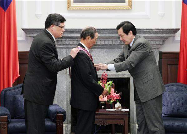 On the morning of May 2 at the Presidential Office Building, President Ma Ying-jeou bestowed the Order of Brilliant Star with Grand Cordon on Atsushi Hatakenaka, former chairman of the Japan Interchange Association, in recognition of his outstanding contributions to relations between Taiwan and Japan. Mrs. Hatakenaka, Japan Interchange Association Taipei Office Chief Representative Sumio Tarui and Mrs. Tarui, as well as Secretary-General to the President Timothy Chin-Tien Yang (楊進添), National Security Council Secretary-General Jason C. Yuan (袁健生), Deputy Minister of Foreign Affairs Ting Joseph Shih (石定), and former Taiwan Representative to Japan John C.T. Feng (馮寄台) were among those on hand to witness the ceremony.