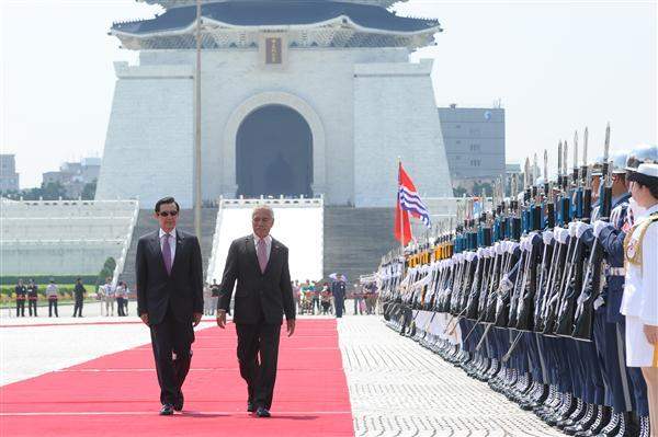 On the morning of May 31, President Ma Ying-jeou welcomed Republic of Kiribati President Anote Tong and Mrs. Tong, who are leading a delegation from their nation to Taiwan, in a ceremony featuring full military honors. The president called for continued strengthening of the cooperative relationship between the two countries and a lasting alliance.
