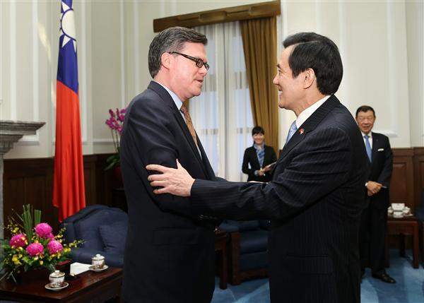 The delegation, which was led by USCC Vice Chairman Dennis C. Shea, was accompanied to the Presidential Office by Director Christopher J. Marut of the American Institute in Taiwan Taipei Office to meet President Ma. Also attending the meeting were Secretary-General to the President Timothy Chin-Tien Yang (楊進添), National Security Council Secretary-General Jason C. Yuan (袁健生), and Deputy Minister of Foreign Affairs Ting Joseph Shih (石定).