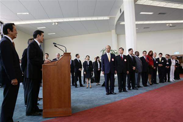 President Ma emphasized that he and his administration have pursued a "viable diplomacy" policy since taking office five years ago. In addition to reducing animosity between the two sides of the Taiwan Strait in the international community, this policy has enabled the ROC to actively solidify the alliances with its diplomatic partners and further enhance its relationships with countries with which it does not maintain diplomatic ties, he said. Consequently, the ROC's relations with the United States, Japan, and other countries in the Asia-Pacific region have improved, he stated, adding that presently 133 jurisdictions throughout the world provide visa-free or landing visa courtesies to the ROC. President Ma expressed his appreciation to the nation's diplomatic personnel for their tireless efforts and contributions in forging these achievements.