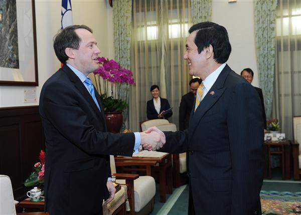 Professor Gullett and National Taiwan Normal University Professor Kuan-Hsiung Wang (王冠雄) were accompanied to the Presidential Office by Deputy Interior Minister Hsiao Chia-chi (蕭家淇) to meet with President Ma. Also attending the meeting was National Security Council Advisor Francis Yi-Hua Kan (甘逸驊).