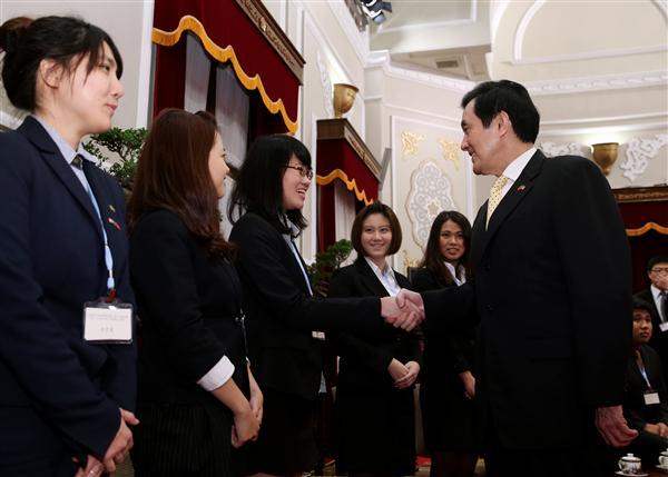 President Ma stated that in order to continue to expand interaction among youth from Taiwan and other countries, the government has signed working holiday agreements with Australia, New Zealand, Canada, Japan, Korea, Germany, the United Kingdom, Ireland, and Belgium. In addition, Taiwan has also expanded its efforts to recruit foreign students to study here, he said. Prior to 2007, he noted, the number of foreign students studying in Taiwan stood at over 30,000, which included only 800 mainland Chinese students at the time. As of last year, though, the number of foreign students engaged in coursework here had more than doubled to over 78,000. Meanwhile, the number of mainland Chinese students studying here had increased 30-fold to 24,000, he stated. The government has set a goal to further increase the number of foreign students studying here in 2020 to 150,000, which by that time would constitute 10% of the total number of students in our universities and colleges, he remarked. This will help build up Taiwan as an Asia-Pacific hub for higher education, the president added.